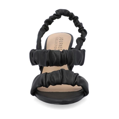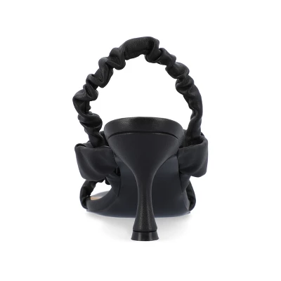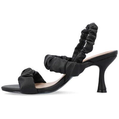Our Amaree stiletto heels from Journee Collection will have you walking the streets in style while attracting compliments along the way. With their luxe vegan leather, sling-back style, ruched strap detail, and round toe, this style just might become your favorite. Their pull-on feature will let you kick back and relax at the end of the night with ease.