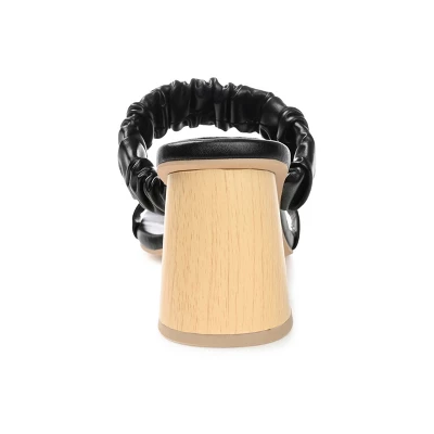 Trendy but versatile, the Fayth by Journee Collection. This side-on-heel features a simple band at the toe complemented by a ruched strap at the vamp. Soft vegan leather and a 4 mm Tru Comfort Foam™ insole elevated by a faux wood block heel shape the design. At Journee Collection, our pump styles will let you go from a fun night out with the girls to kicking back and relaxing at the end of the night without any trouble.