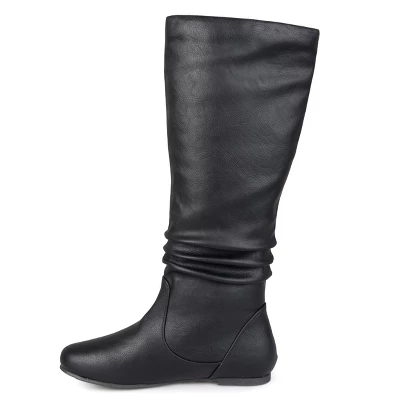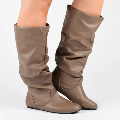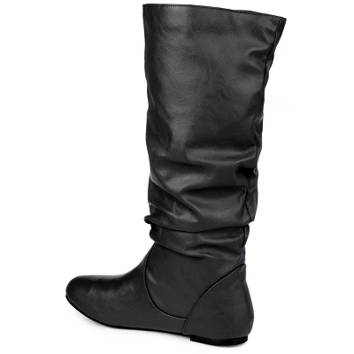 Show off classic style in women�s flat riding boots by Journee Collection. These autumn boots feature faux leather with a subtle slouchy design at the ankles. At Journee Collection our boot styles will have your outfit looking even better than before. They will give you that finishing touch that will have your outfit looking straight out of a magazine.