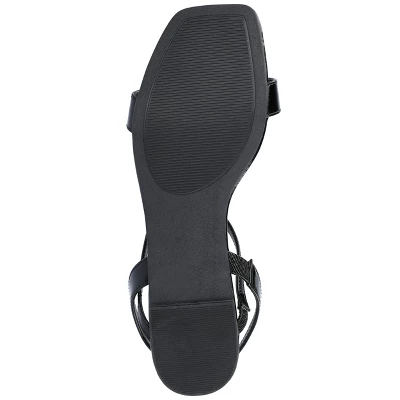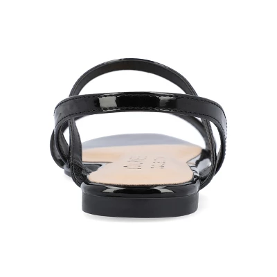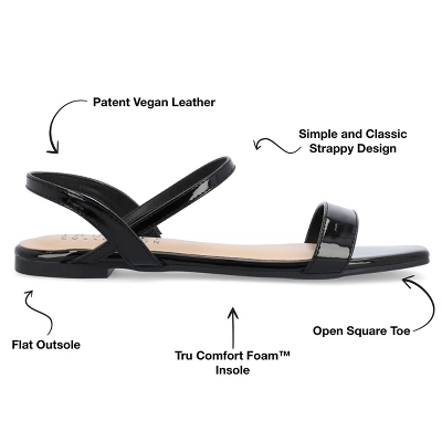 The Karren sandal from Journee Collection will be the perfect shoe to take you from work to a night on the town. Their crisscross buckle ankle strap, patent vegan leather, sling-back style, and open square toe will be the perfect amount of style to give you a classy yet casual look. To keep things simple, their 4 mm Tru Comfort Foam™ insole and pull-on closure will keep your feet comfortable with every step.