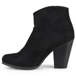 Show off chic style in heeled booties by Journee Collection. These booties feature premium faux suede uppers that rise to the ankles. Chunky Cuban heels and outside gold-tone zippers complete the look. At Journee Collection, our booties will give you that comfortable yet stylish look, perfect for when you’re in the office all the way to a fun night out with the girls.