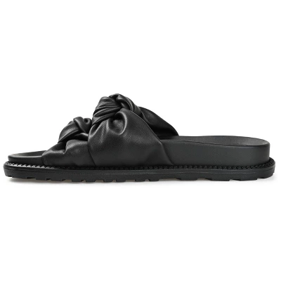 You’ll look oh-so-cool at the pool or beach Melanie by Journee Collection. With a comfy padded footbed and soft vegan leather, this sporty slide fits like a dream. Puffed straps with knot details top the look. At Journee Collection, our sandal styles are going to be perfect for any occasion. Whether that be a formal, business, or casual dress, these sandals will be a perfect match.