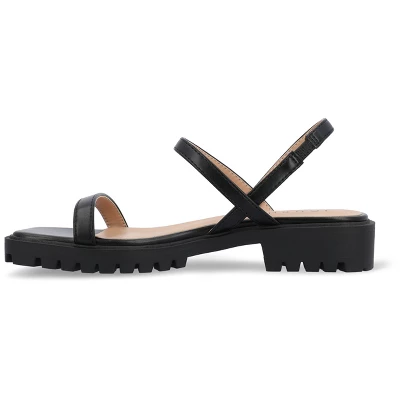 Our Nylah block-heeled sandals from Journee Collection will leave you doing a fashion show everywhere you go. Their luxe vegan leather, sling back, ankle strap, slim platform, treaded lug outsole, and open square toe will make them a perfect combination to go with any outfit time and time again. The pull-on closure will make them an easy grab-and-go shoe without worrying if they’ll match or not.