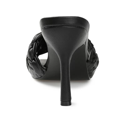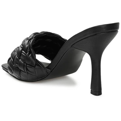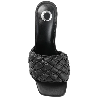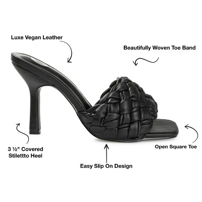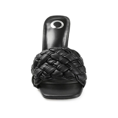 Slip on something fabulous with the Raquelah by Journee Collection. This slip-on silhouette features soft vegan leather finished with a puffed woven design at the vamp. A bold stiletto heel and an oh-so-comfortable padded footbed elevate the look. At Journee Collection, our pump styles will let you go from a fun night out with the girls to kicking back and relaxing at the end of the night without any trouble.