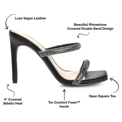 The Reena by Journee Collection has a striking appearance. For a fresh look, the man-made straps on this airy heel are embellished with rhinestones throughout. The design is completed with a stiletto heel and 4 mm Tru Comfort Foamâ„¢ insole for increased comfort. At Journee Collection, our pump styles will let you go from a fun night out with the girls to kicking back and relaxing at the end of the night without any trouble.