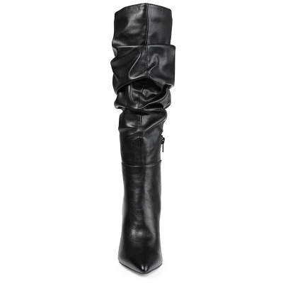 Add some drama to your look in the Sarie by Journee Collection. This slouchy wide-calf boot features soft vegan leather and a supportive 4 mm Tru Comfort Foam™ footbed for the perfect fit. A bold stiletto heel finishes the look for a leg-lengthening elevation. At Journee Collection, our boot styles will have your outfit looking even better than before. They will give you that finishing touch that will have your outfit looking straight out of a magazine.