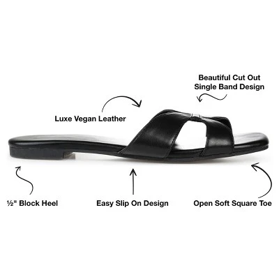 The Taleesa by Journee Collection looks like the makings of a perfect summer day! This slide-on sandal features a squared open-toe for a contemporary look. Keyhole details at the vamp, soft vegan leather, and a padded footbed complete the design. At Journee Collection, our sandal styles are going to be perfect for any occasion. Whether that be a formal, business, or casual dress, these sandals will be a perfect match.