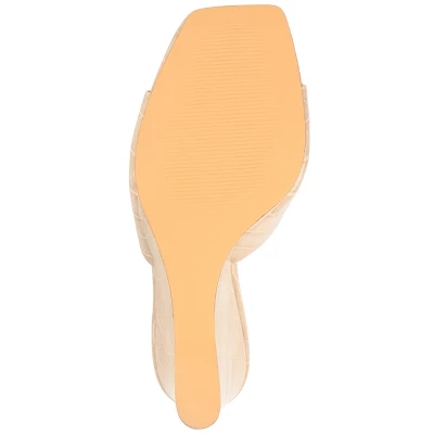 The comfortable heels you’ve been waiting for, the Vivvy by Journee Collection. This slip-on silhouette features croc textured vegan leather uppers complemented by a 4 mm Tru Comfort Foam™ footbed for a comfortable fit. A simple band at the toe and a lofty wedge heel define the shape. At Journee Collection, our pump styles will let you go from a fun night out with the girls to kicking back and relaxing at the end of the night without any trouble.